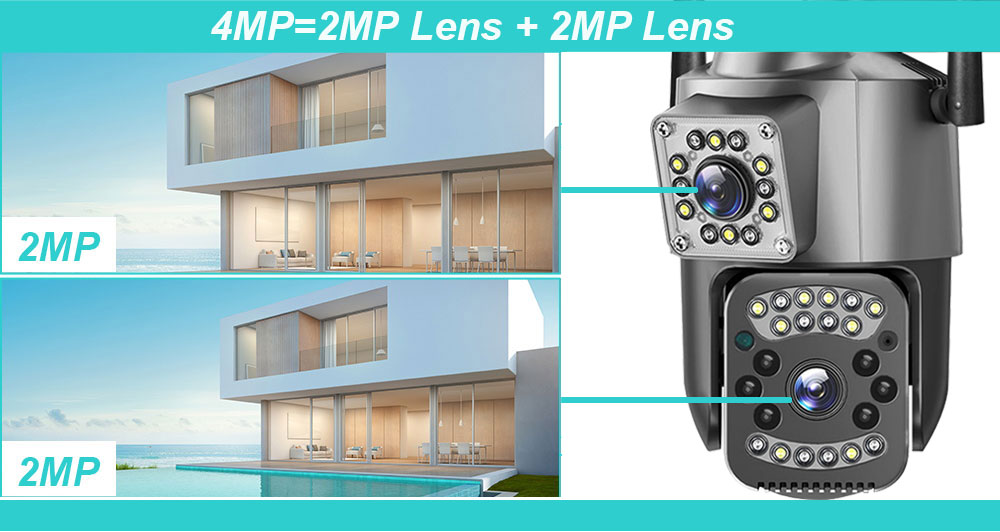1. 2K 4MP (2MP+2MP) HD Dual Lens Network IP Camera For Indoor&Outdoor