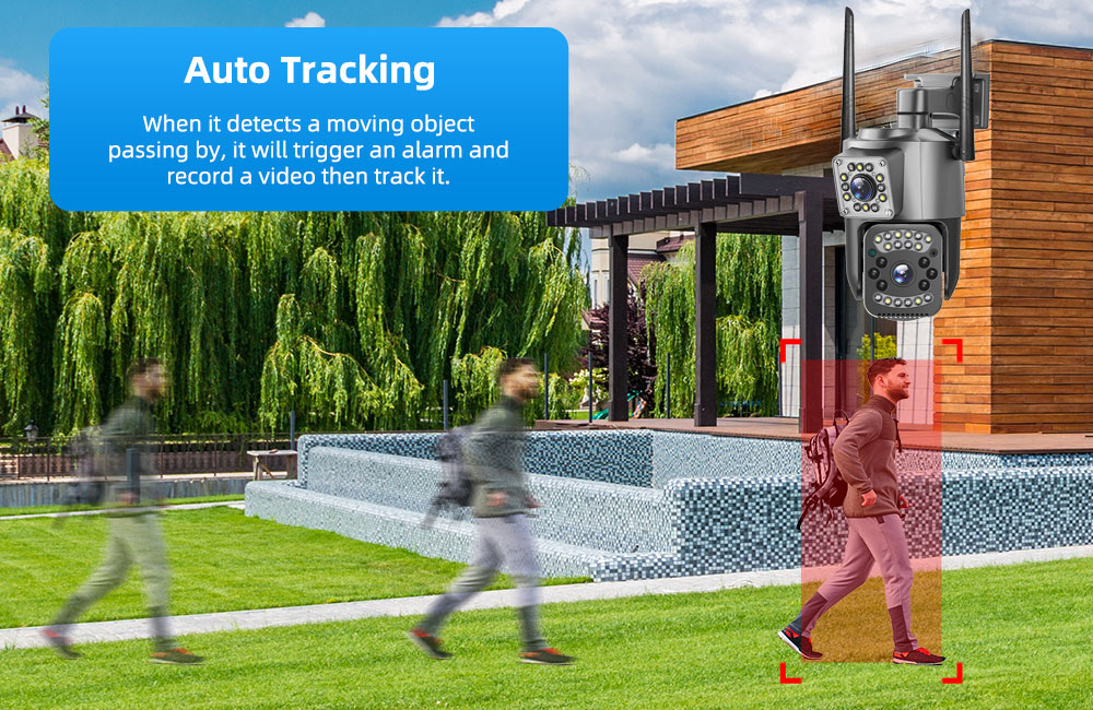 9. Automatic tracking/movement alarm, alarm output sound and light linkage;