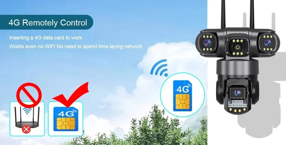✅ Two-Way Audio – Built-in microphone and speaker for real-time conversations. ✅ 4G & WiFi Connectivity – Supports 4G SIM card and 2.4GHz WiFi for flexible installation.